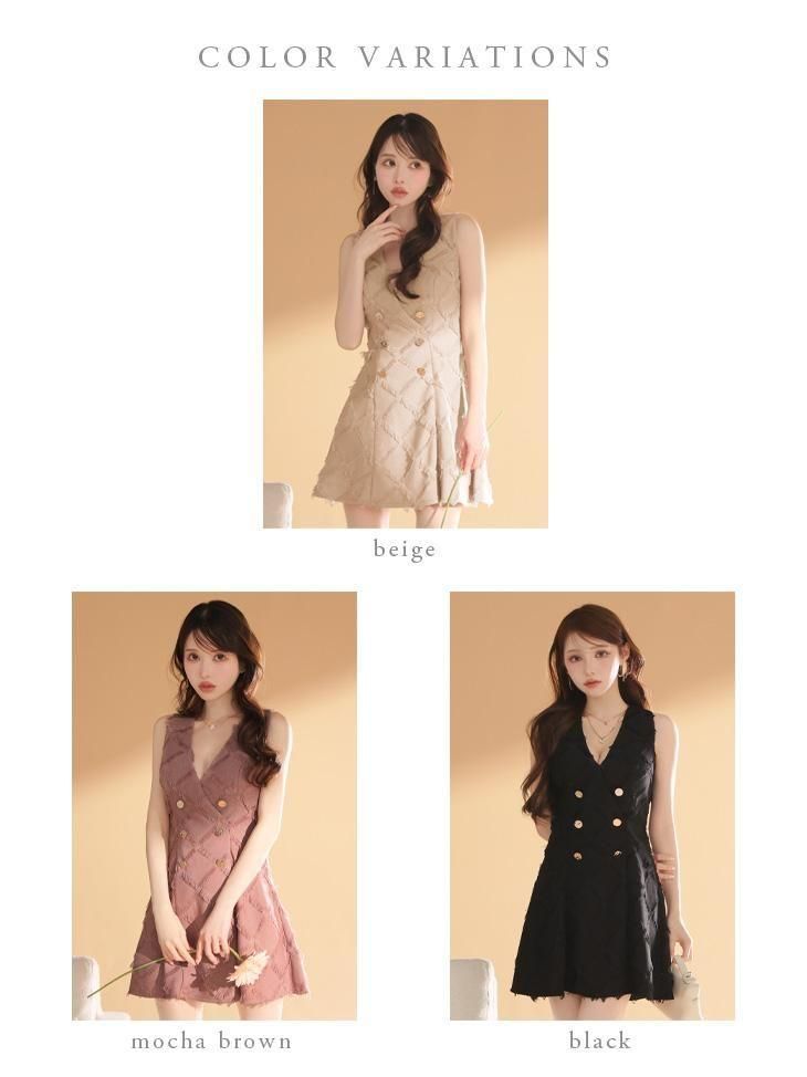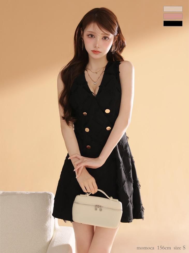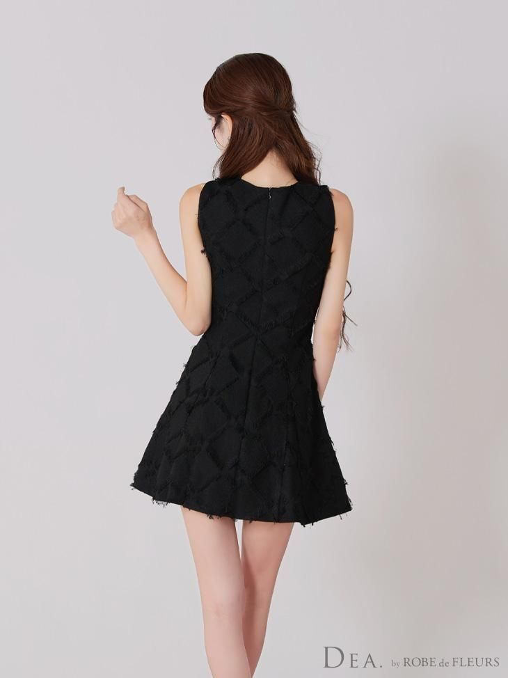フリンジジャカード素材が華やかさを添えるモードなデザイン。
