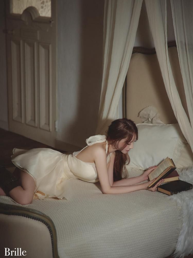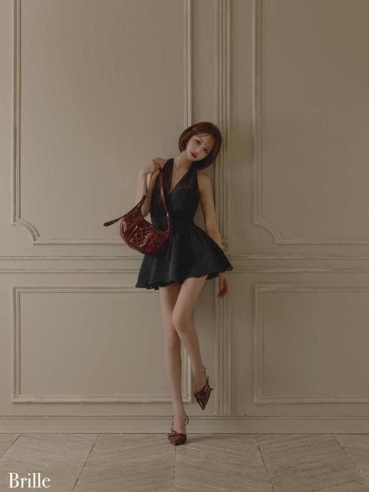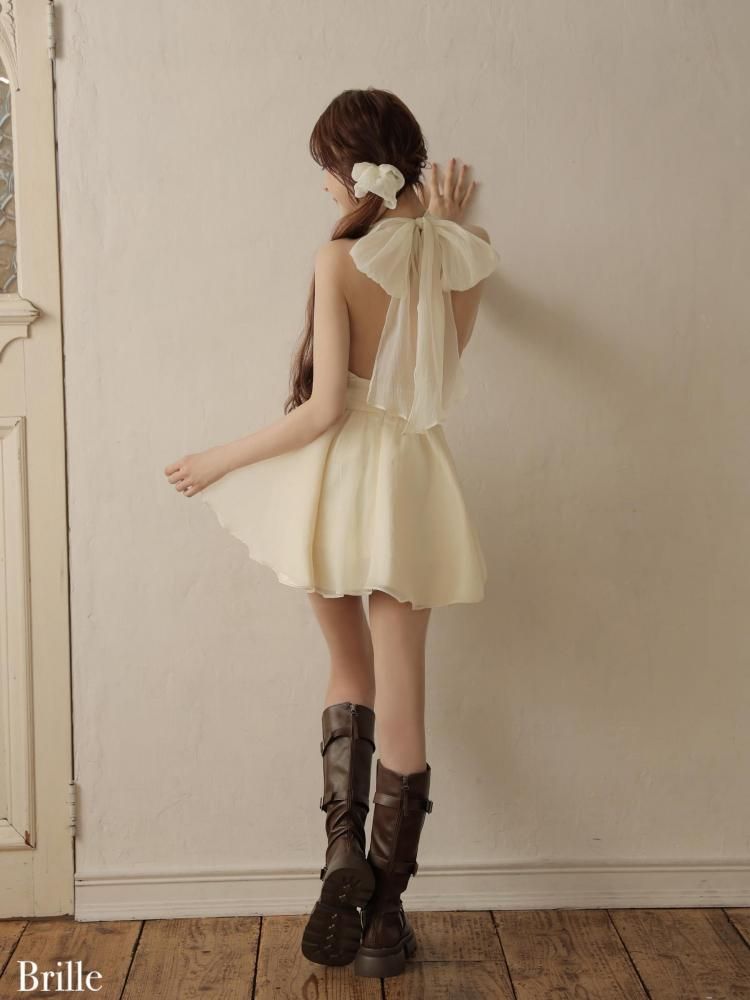 胸元の透け感や、背中で結ぶリボンディテールが 甘さの中にさりげない抜け感をプラスしてくれます。