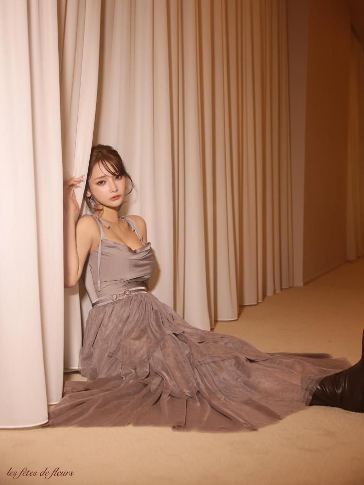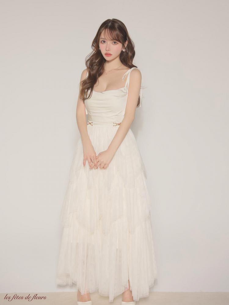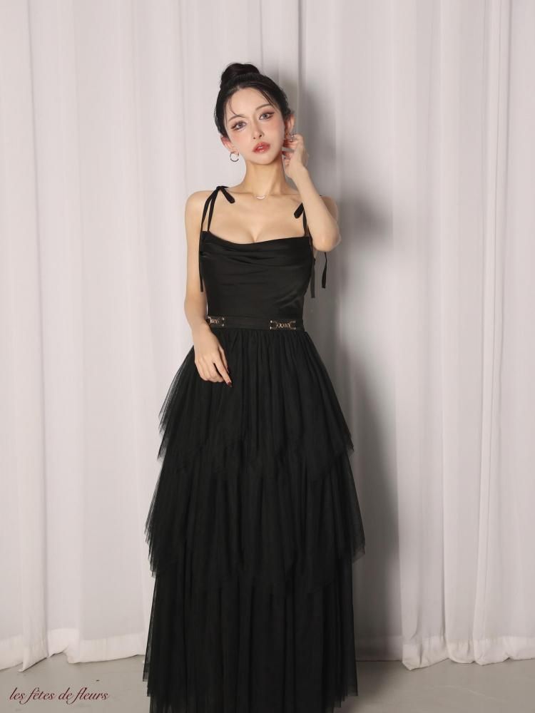 ティアードスカートが優雅に広がり、歩くたびにドラマティックな表情を演出。