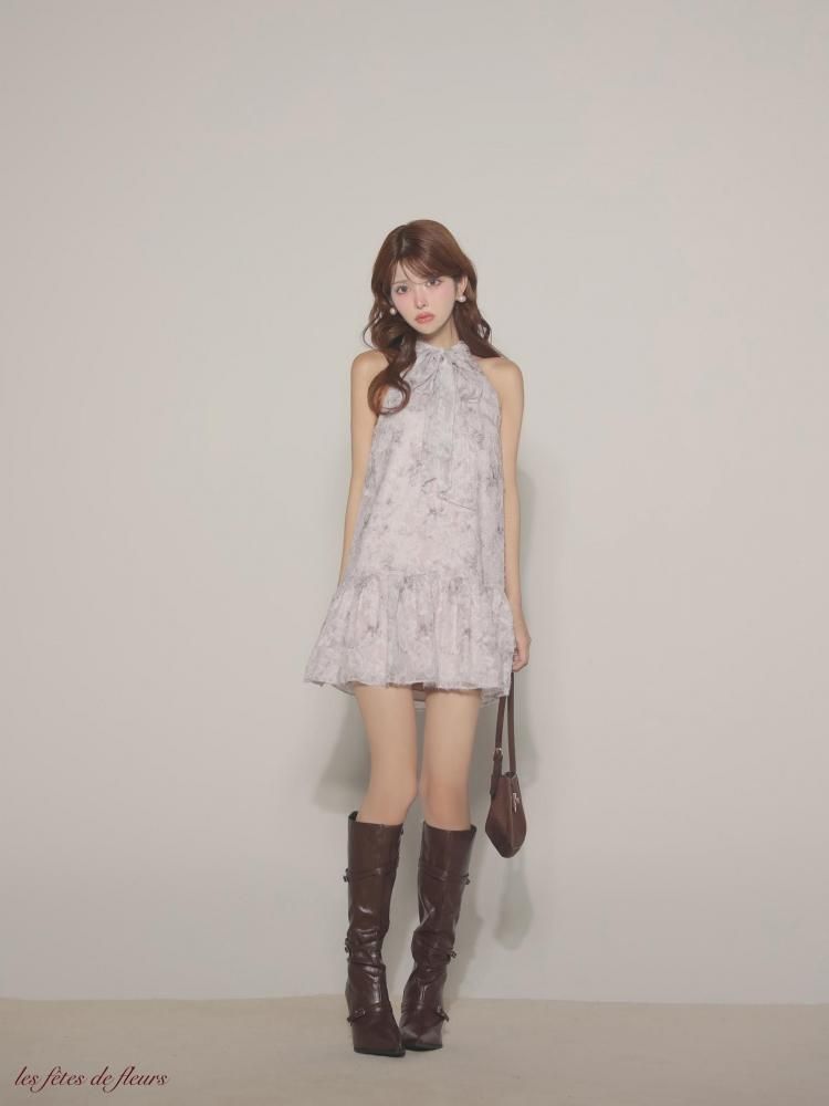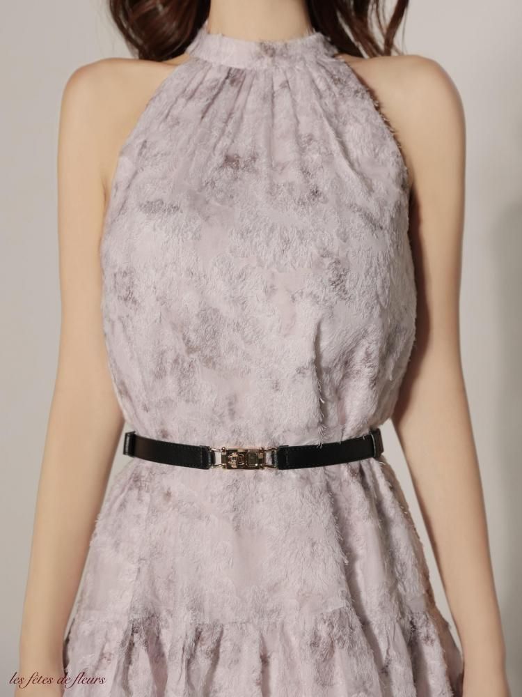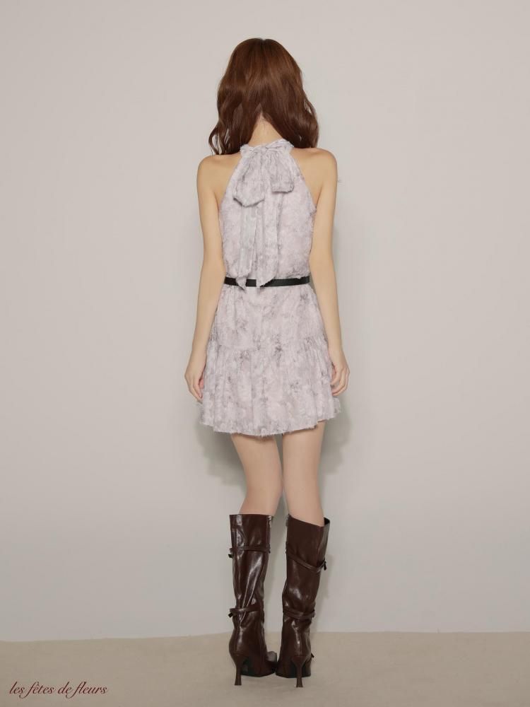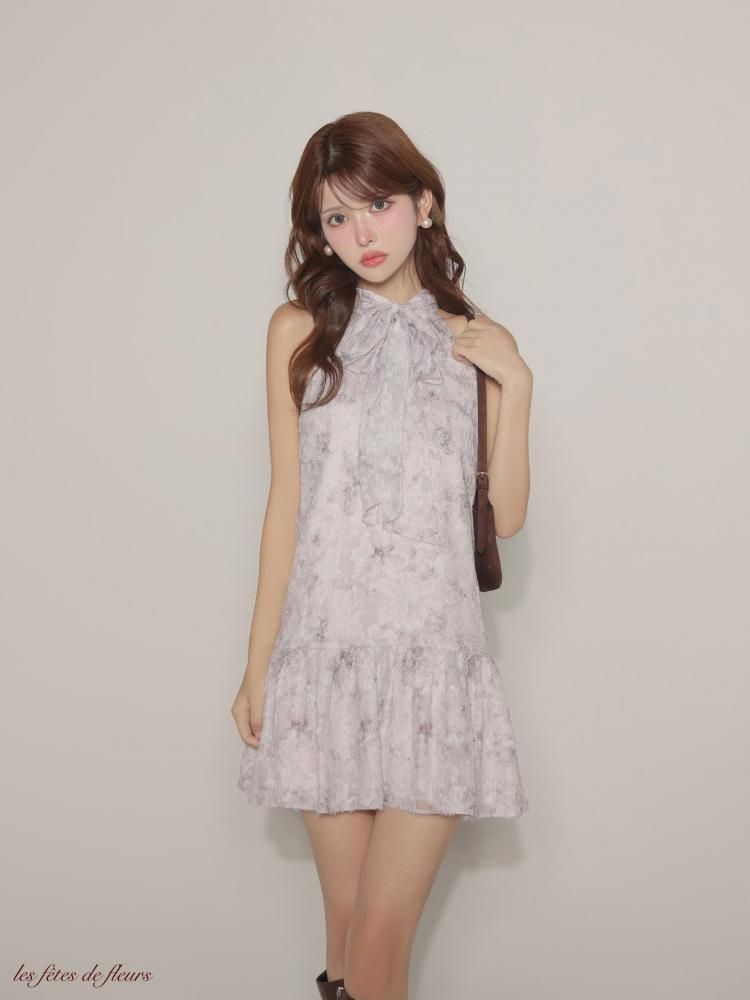 軽やかなシアー素材に、リボンと細やかなタックデザインを施したハイネックのミニドレス。