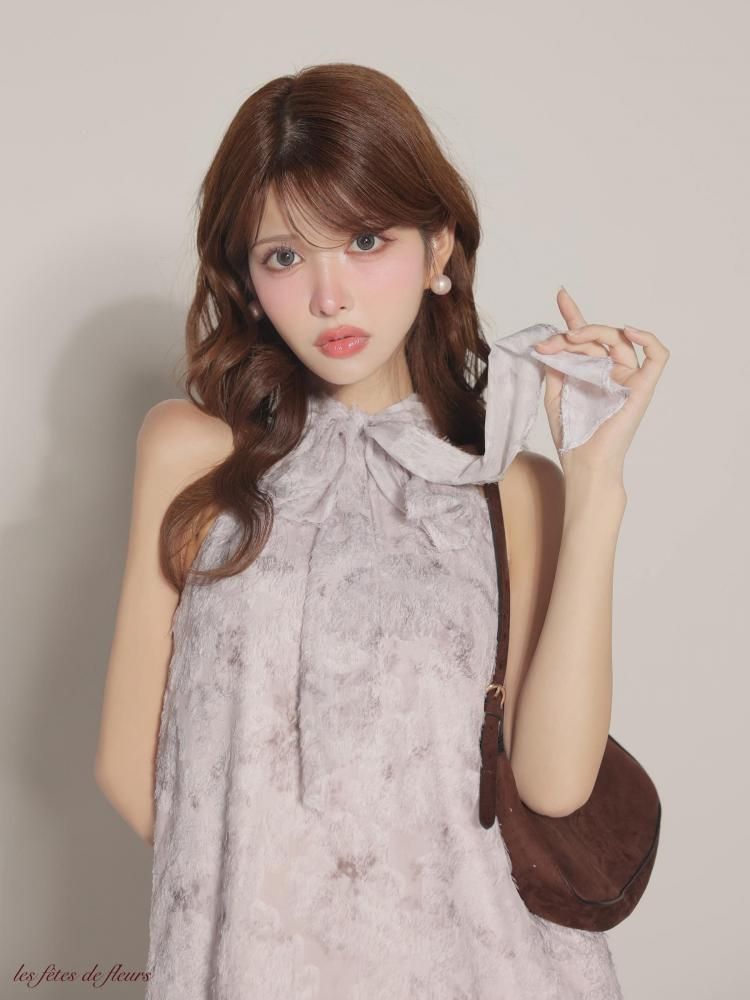 首元のリボンは結び方次第で雰囲気を変えられ、エレガントにもキュートにも着こなせます。